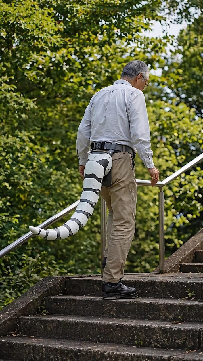Натхненний хвостом морського коника, пристрій використовує чотири штучні м’язи, що працюють на стисненому повітрі. Хвіст має довжину близько одного метра і діє як противага, допомагаючи літнім людям зберігати стабільність.